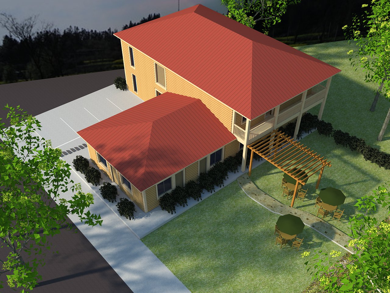 配套建筑部品:整體為輕鋼結構,屋面瀝青瓦+卷材防水(材料可選),木塑掛板復合保溫外墻(材料可選),石膏板內墻(材料可選),鋁合金門窗(材料可選)。