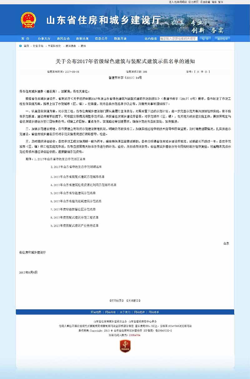 在2017年5月,根據(jù)省住房城鄉(xiāng)建設(shè)廳、省財(cái)政廳《關(guān)于組織申報(bào)2017年度山東省綠色建筑與裝配式建筑示范的通知》(魯建節(jié)科字〔2017〕6號(hào))要求,各市制定了示范工程總體實(shí)施方案,推薦上報(bào)了示范城市(區(qū)、鎮(zhèn))。經(jīng)審查,現(xiàn)將各類示范名單予以公布。