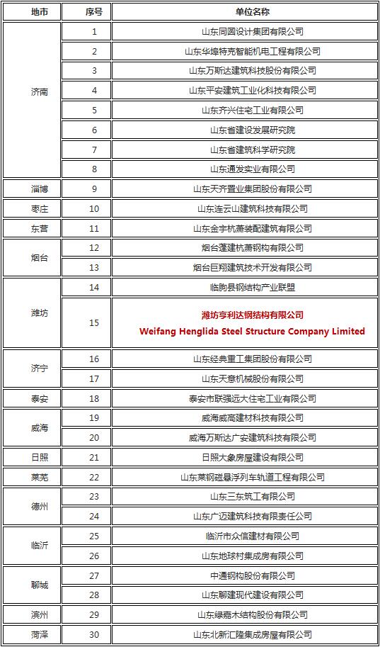 在公布諸多的裝配式建筑示范城市名單、綠色生態(tài)示范鎮(zhèn)、超低能耗建筑示范名單等多項(xiàng)內(nèi)容中,《2017年度裝配式建筑產(chǎn)業(yè)基地名單 》的公布無疑成為山東省的“皇榜”。在榜單中可看出,多家山東省內(nèi)的建筑設(shè)施公司均榜上有名,濰坊亨利達(dá)鋼結(jié)構(gòu)有限公司名列其中,這無疑是對(duì)公司理念的肯定、對(duì)企業(yè)發(fā)展戰(zhàn)略的肯定、對(duì)所有利達(dá)人的辛苦的肯定。